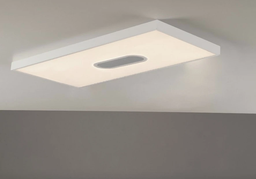 Tento jedinečný panel s vestavěným reproduktorem s funkcí bluetooth a rádiem je také stmívatelný a s funkcí CCT , změnou barvy světla . To vše se ovládá dálkovým ovladačem .