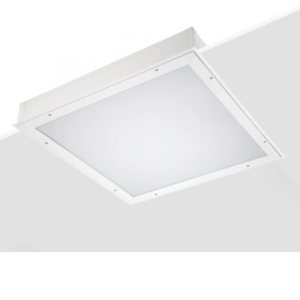 Těleso LED panelu je vyrobeno z ocelového plechu o tloušťce 0,6 mm. Ocelový difuzor s nerezovými šrouby. Bílý práškový lak RAL 9003. Voděodolné těsnění. Řada 4109 pro podhledy s viditelnou konstrukcí.