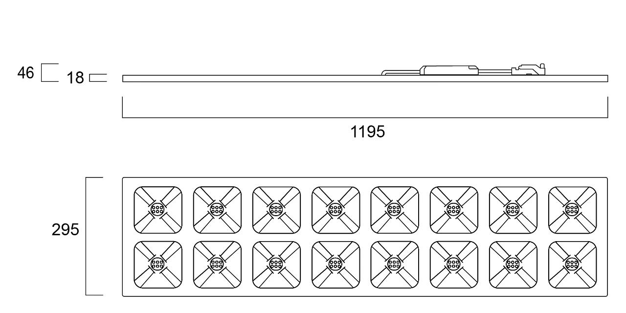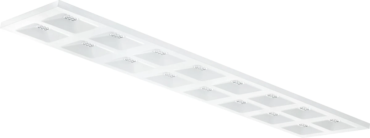 QUADRO 1200x300 840 DALI Unikátní stylové zapuštěné modulární LED svítidlo, ideální pro všeobecné vnitřní osvětlení, jako jsou prostory pro odpočinek, kanceláře a zasedací místnosti. Ocelový rám s integrovaným reflektorem, pasivní chlazení. Nízké oslnění UGR<16. RG1, vyzařovací úhel 75°, optický systém: bílý reflektor s čočkami s úplným vnitřním odrazem. Teplota barvy světla: 4000K (neutrální bílá), maximální výkon systému: 34W (900mA), maximální světelný tok: 4650lm, účinnost při maximálním výkonu 137lm/W, maximální účinnost 153lm/W při 15W, CRi (Ra) >80 typicky, chromatika LED: 3stupňová MacAdamova elipsa (SDCM3), životnost: 88 000 hodin při 80 % původního výkonu (L80B20), světelný zdroj bez IR/UV záření a tepelného záření, provozní napětí: 220-240V / 50-60Hz, nízké blikání, SELV DALI předřadník, elektrická ochrana: třída II. Krytí IP40/IP20, vhodné pouze pro vnitřní prostředí. Jmenovitý rozměr: 1195x295mm, Zapojení vstupní/výstupní smyčky, bezpečnostní kabely součástí balení, jmenovitá výška 18mm, barva rámu RAL 9003 - signální bílá, hmotnost: 3,40kg.