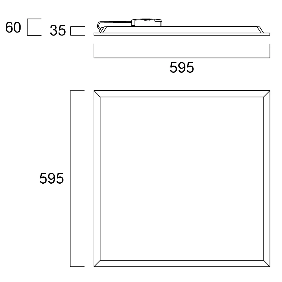 LED panel s technologií podsvícení, ideální pro všeobecné vnitřní osvětlení, jako jsou prostory pro odpočinek, kanceláře a zasedací místnosti. Nízké oslnění UGR<22. RG0, vyzařovací úhel 110 stupňů, optický systém: PS difuzor s opálovou povrchovou úpravou. Teplota barvy světla: 4000K Neutrální bílá, celkový výkon systému: 35W, celkový výkon svítidla: 4200lm, účinnost: 120lm/W, typická Ra80, chromacita LED: 5stupňová MacAdamova elipsa (SDCM5), životnost: 100 000 hodin při 70 % původního výkonu (L70B50), světelný zdroj bez IR/UV záření a tepelného záření, provozní napětí: 220-240V / 50-60Hz, nízké blikání, nestmívatelný předřadník, elektrická ochrana: Třída II. Stupeň krytí: IP40/IP20, vhodné pouze pro vnitřní prostředí. Jmenovitý rozměr: 595x595x35mm, jmenovitá výška 35mm, bílý rám, hmotnost: 2,05kg.